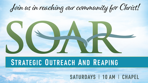 Every Saturday, our SOAR (Strategic Outreach and Reaping) teams meet at 10:00 am in the Heritage Chapel to reach out into our community through door-to-door visitation, placing invitations on doors, and when possible, speaking to our neighbors to share the Gospel and/or personally inviting them to church. We provide all the necessary information and instructions for all who attend.