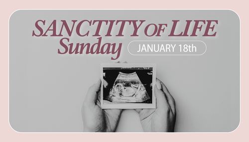 Make plans to join us January 18th for Sanctity of Life Sunday—a time to reflect on the sanctity of every life and the hope found in Christ.